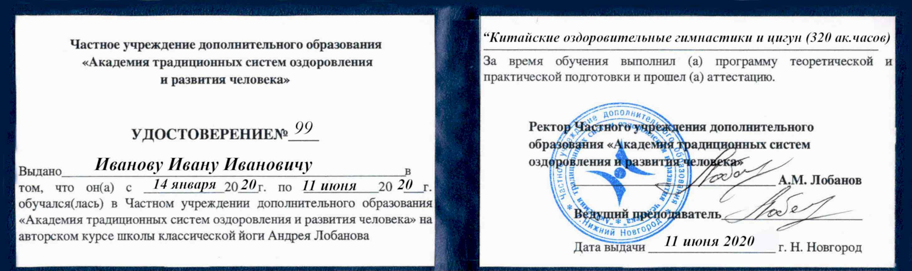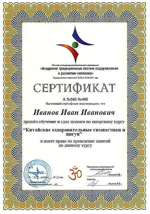 Обучение проводится по программе «Китайские оздоровительные гимнастики и цигун» (лицензия Минобразования № 38) в рамках международного образовательного проекта.
