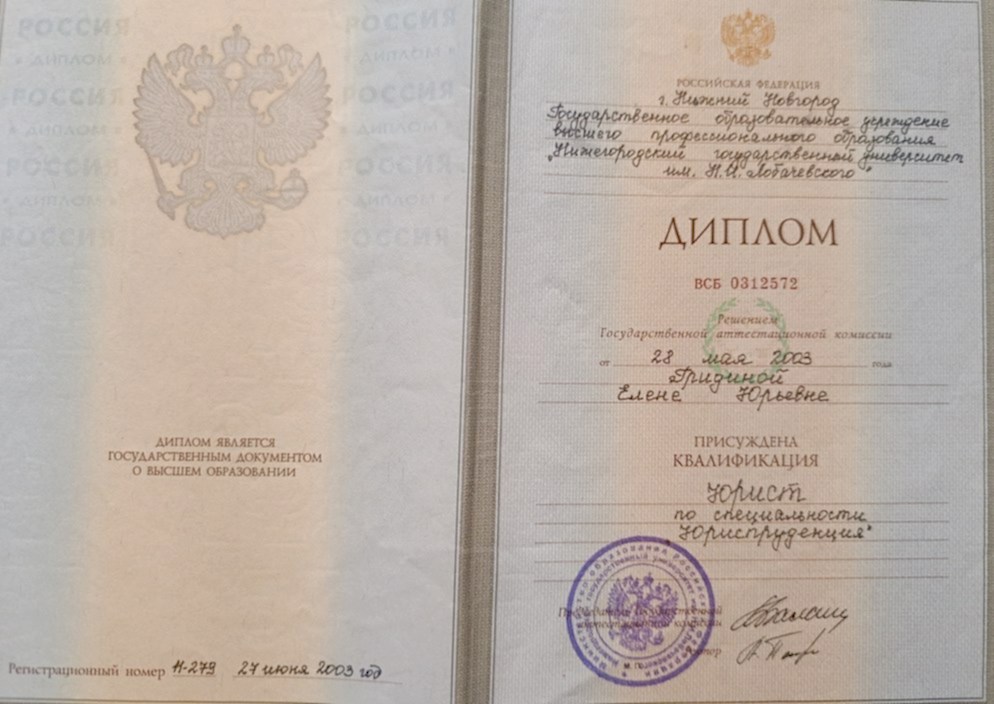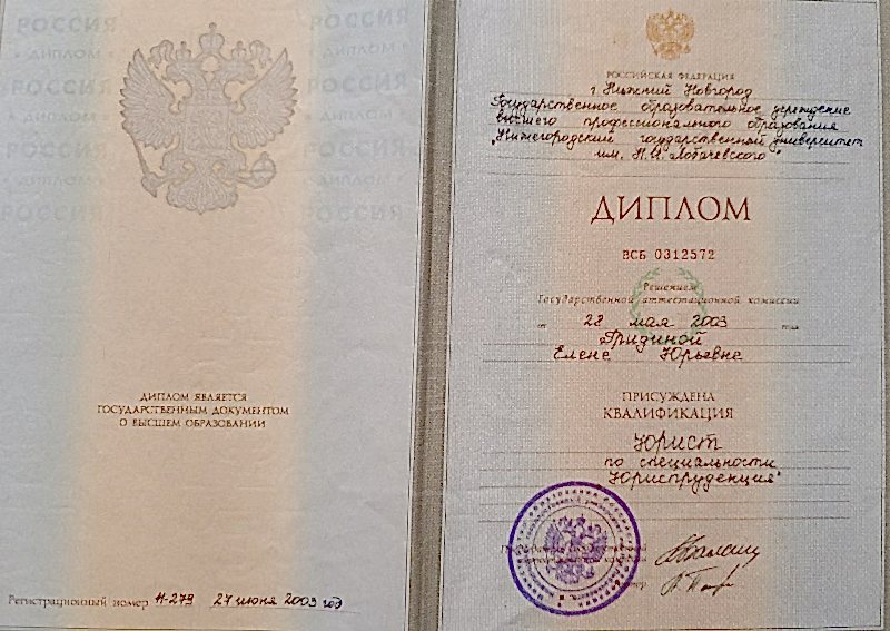 2003 г.- ННГУ им.Лобачевского «Юриспруденция».