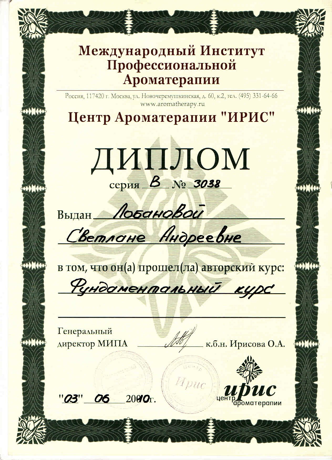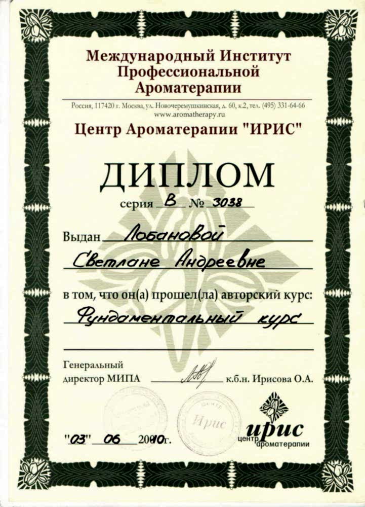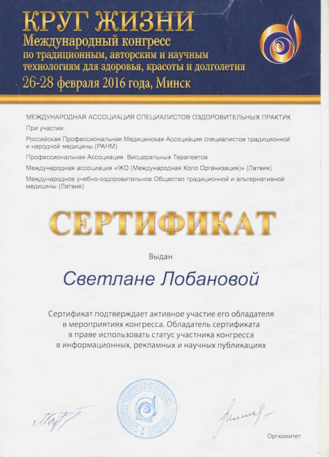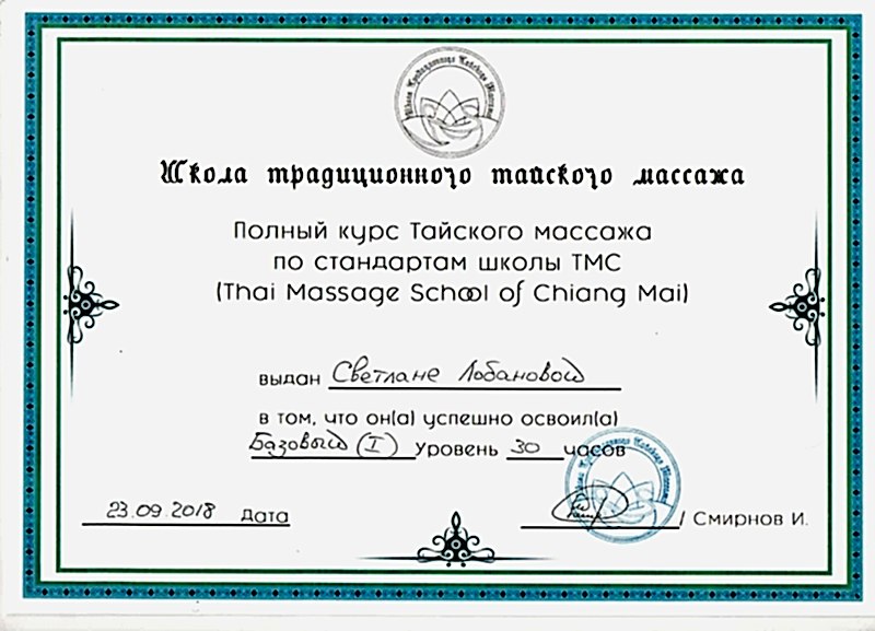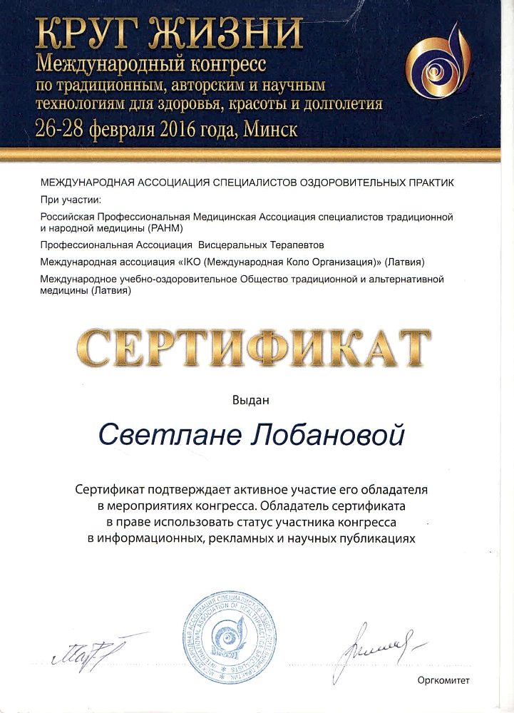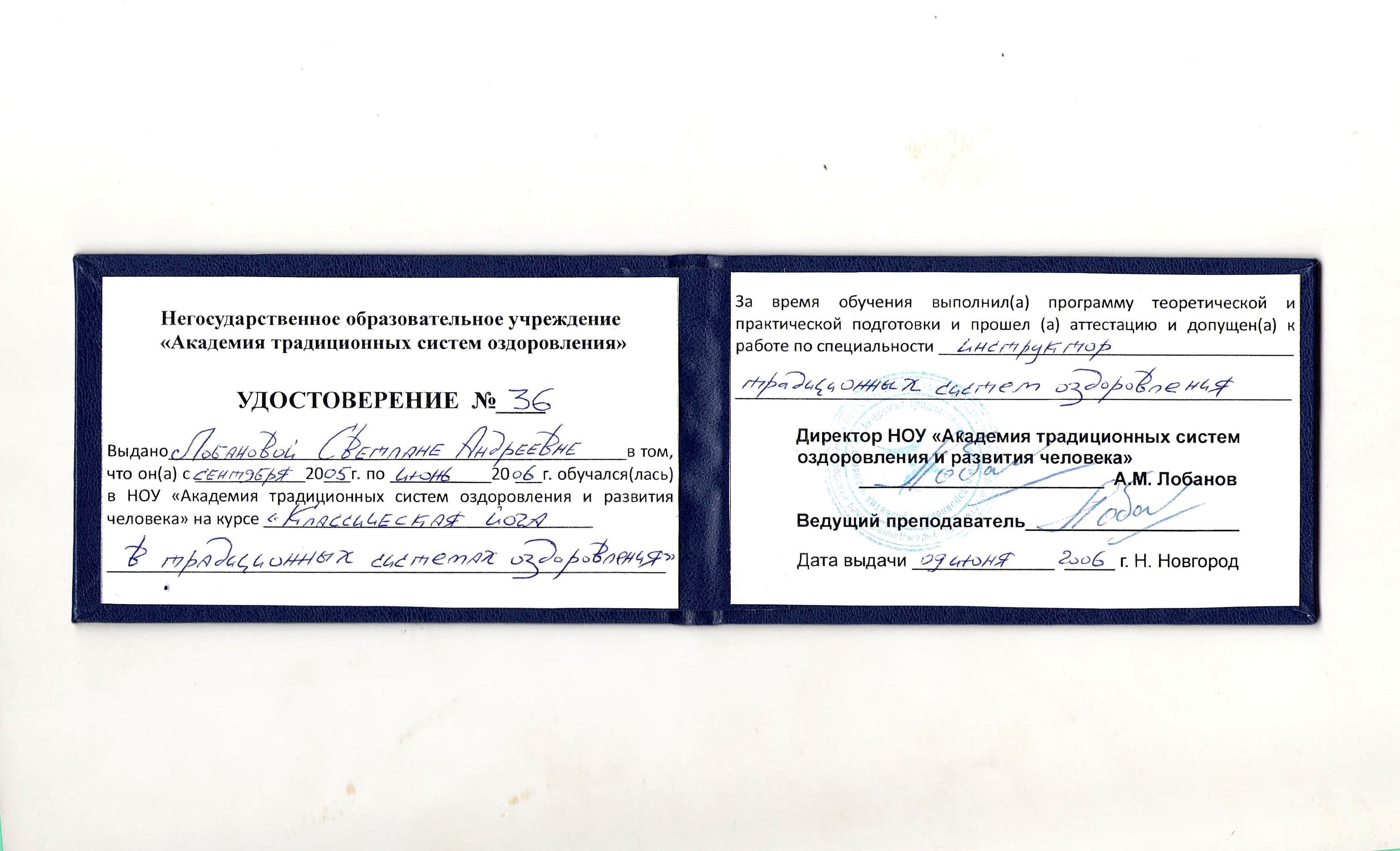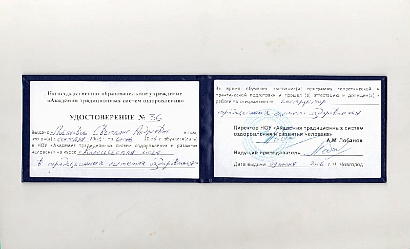 В прошла обучение в Академии традиционных систем оздоровления и развития человека по программам: