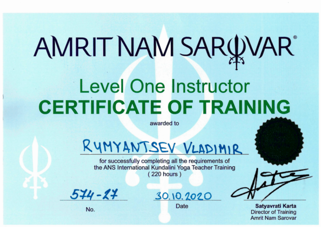 Практик кундалини йоги с 8 летним стажем и дипломом международного образца мастера-преподавателя школы Амритнамсаровар.